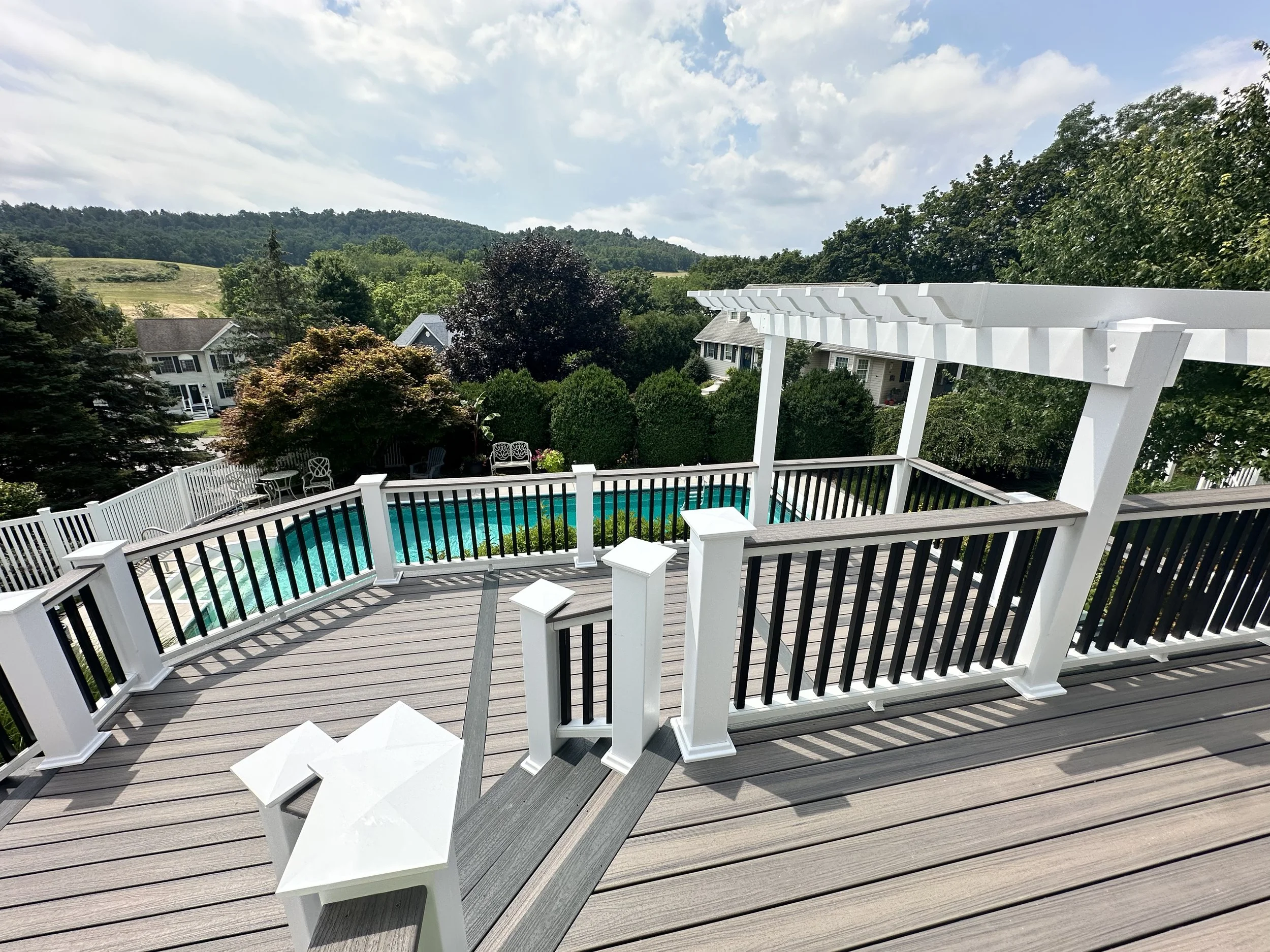 If you’re planning to expand your backyard living space maybe a custom built composite deck is the right choice for you. We offer many different designs and brands of composite decking and vinyl or aluminum railings. We can also build any type of wooden deck to your liking as well as add custom details to make your project specific to your home.